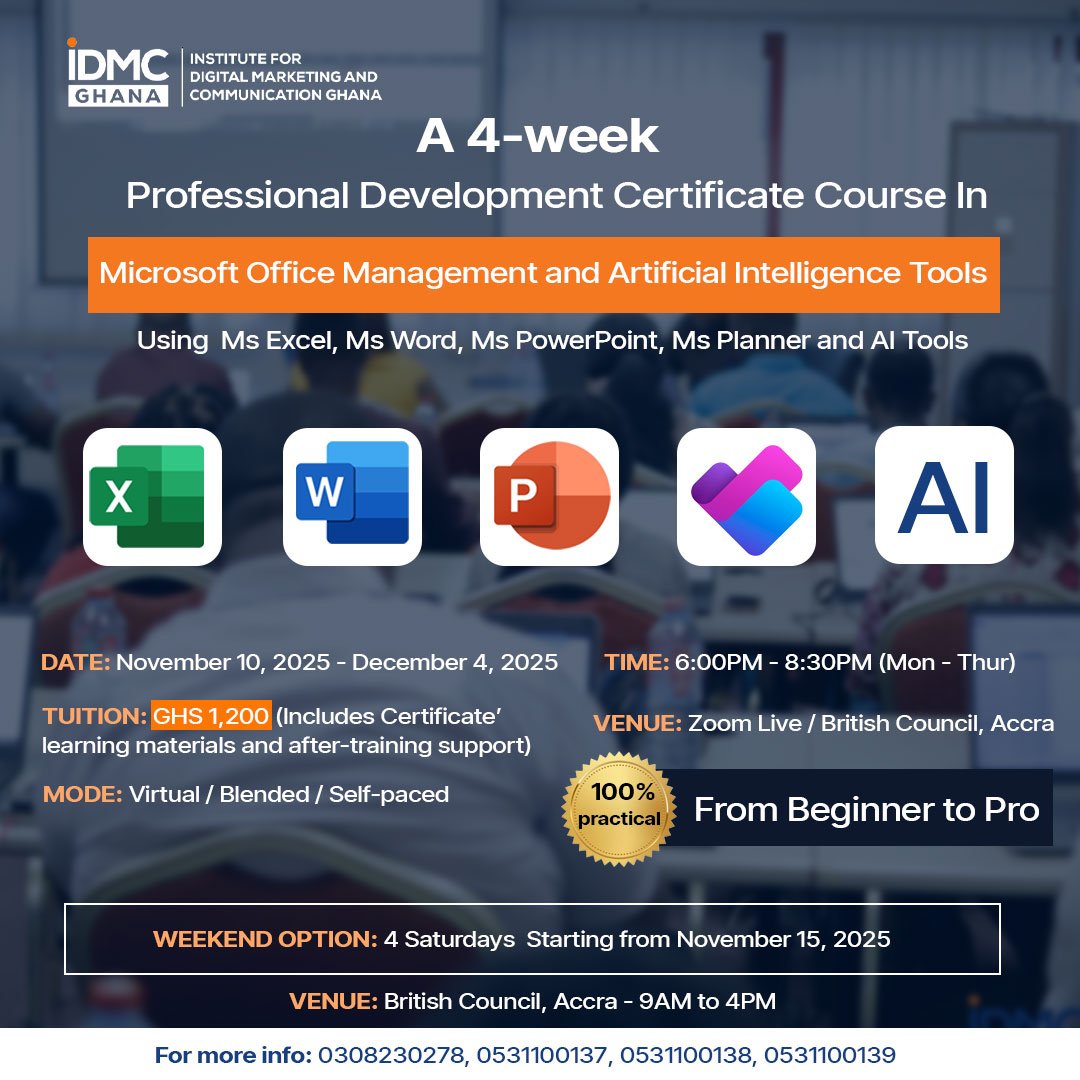- Certified Expertise: Earn a recognized professional certificate from the Institute for Digital Marketing and Communication Ghana, a trusted name in professional training.
